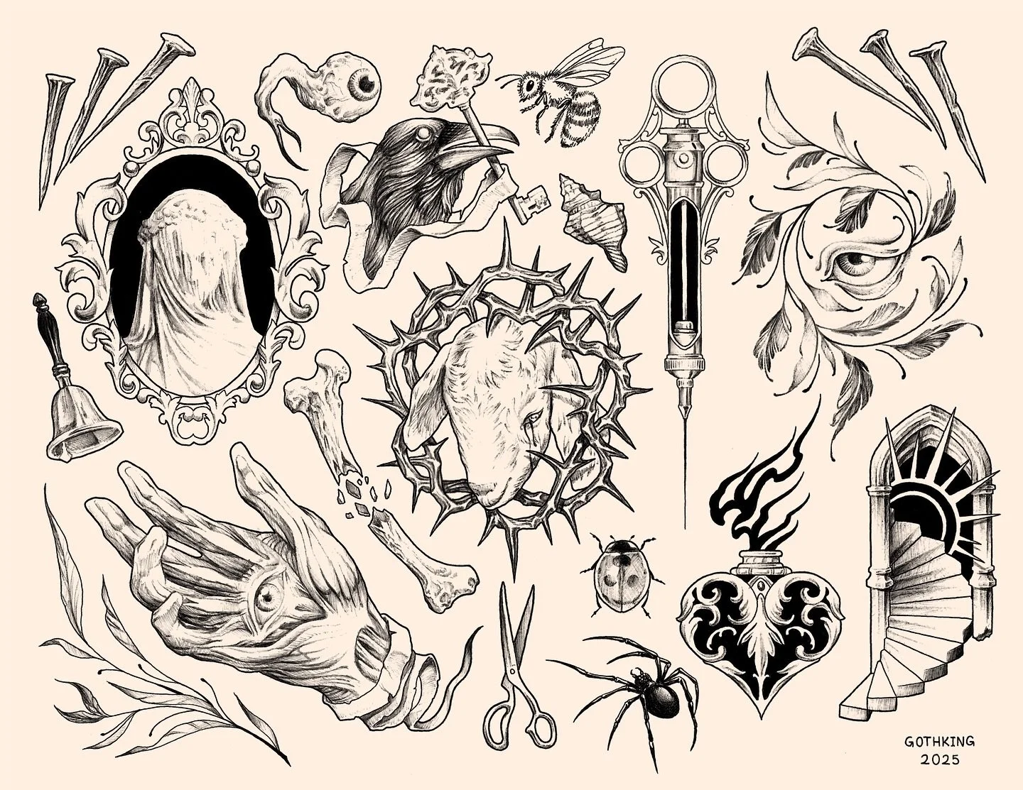 Gavin started his journey in 2019 at Master Craft Tattoo in Chicago, IL and has been with Obsidian Dagger Tattoo since 2023. with the revitalization of the shop, he has become one of the co-owners of obsidian dagger. He specializes in illustrative blackwork with fine-line elements and his dark macabre detailed works have truly earned him the indisputable title of gothking.